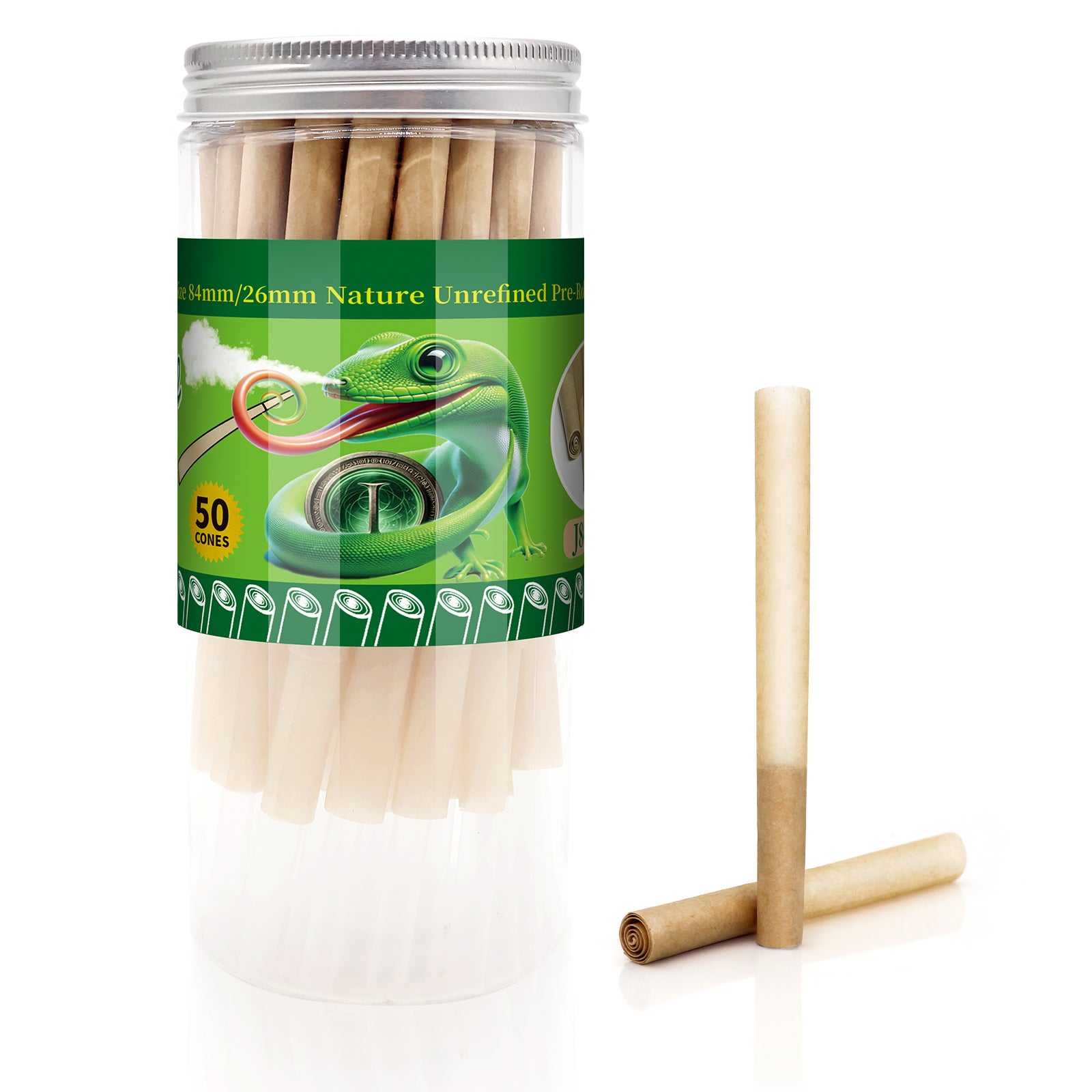 Each cone measures 84mm in length with a 26mm tip, providing a spacious and uniform structure. Designed for users who prefer a classic 1 1/4 size format with consistent capacity.